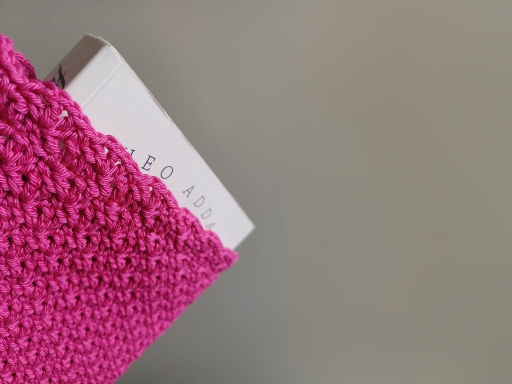 Háčkované obaly na knížky mám opravdu ráda. Jsou takové „za odměnu“… Nejen na čtení, ale i na samotné tvoření. Každý z nich totiž vzniká pomalu – poctivým háčkováním a pak ještě podšitím látkou, aby do něj knížka vklouzla měkce a bez drhnutí. Skoro jako do peřin.