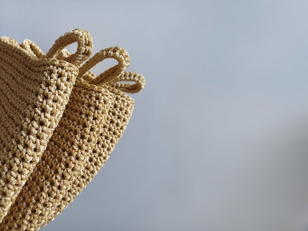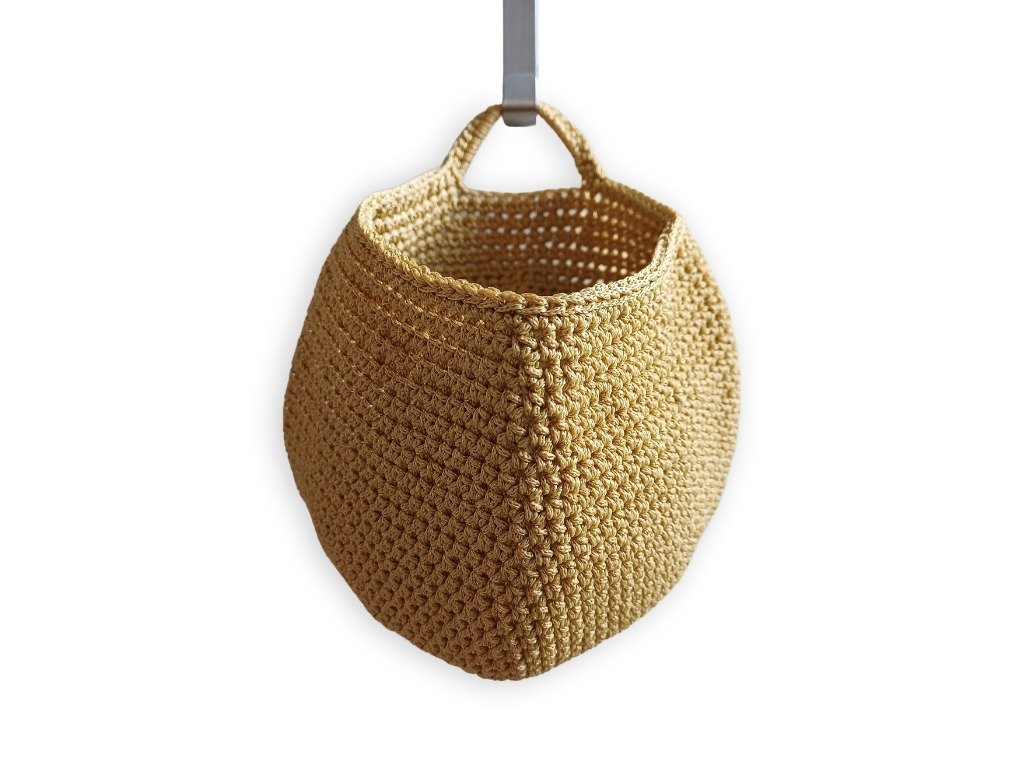 Košíky jsou ručně háčkované ze 100% polyesteru. Materiál je pevný, drží tvar a zvládne i běžný domácí provoz – sundávání, věšení, plnění a zase vyprazdňování. Snadno se udržuje.